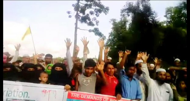 ဘင်္ဂလားဒေ့ရှ်နိုင်ငံဘက်ကို နေရပ်စွန့်ခွာ ထွက်သွားခဲ့ကြတဲ့ ဒုက္ခသည်တွေဟာ သြဂုတ် ၂၅ ရက်နေ့က ဒုက္ခသည်စခန်း အမှတ် ၂၇ မှာ ဆန္ဒပြခဲ့ကြပါတယ်။